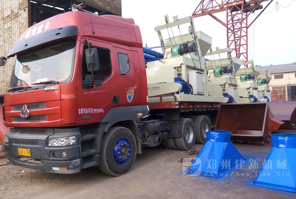 2015年7月11日下午,4臺(tái)JS1000強(qiáng)制式混凝土攪拌機(jī)在鄭州建新機(jī)械裝車,運(yùn)往遼寧。